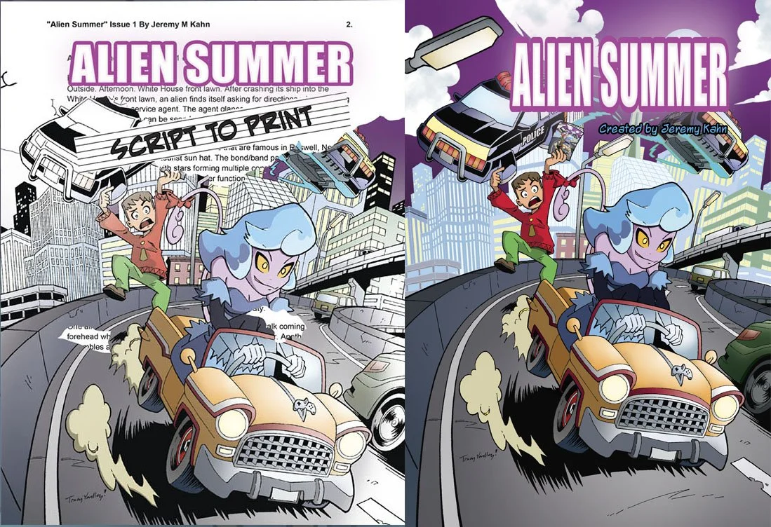 To promote my self-published comic Alien Summer I went about making a book detailing the comic making process used to bring the comic to life.